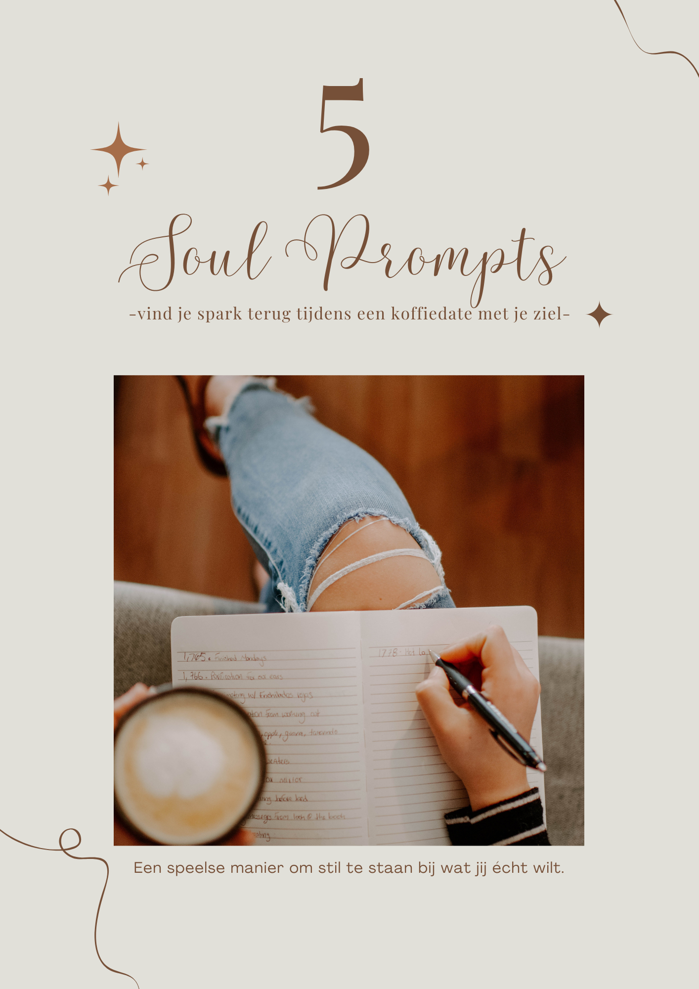➡️ Weggevers – gratis cadeautjes, zoals de “5 Soul Prompts – vind je spark terug tijdens een koffiedate met je ziel”, zodat je laagdrempelig kunt starten.